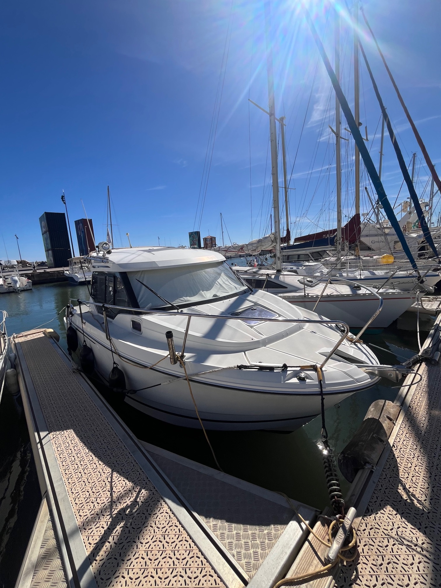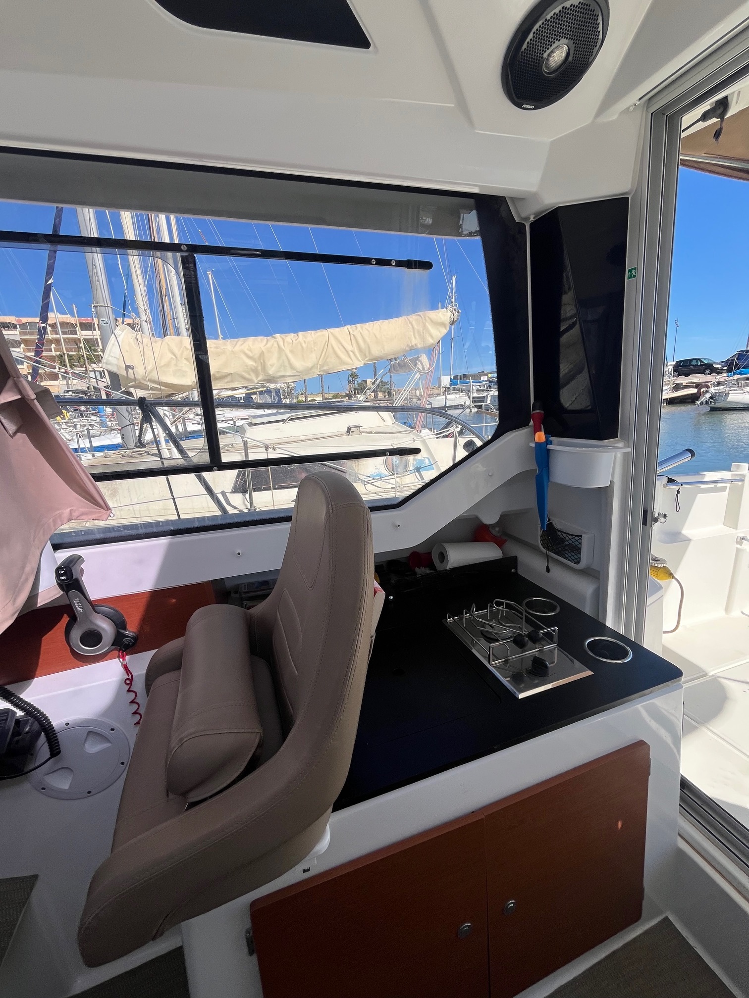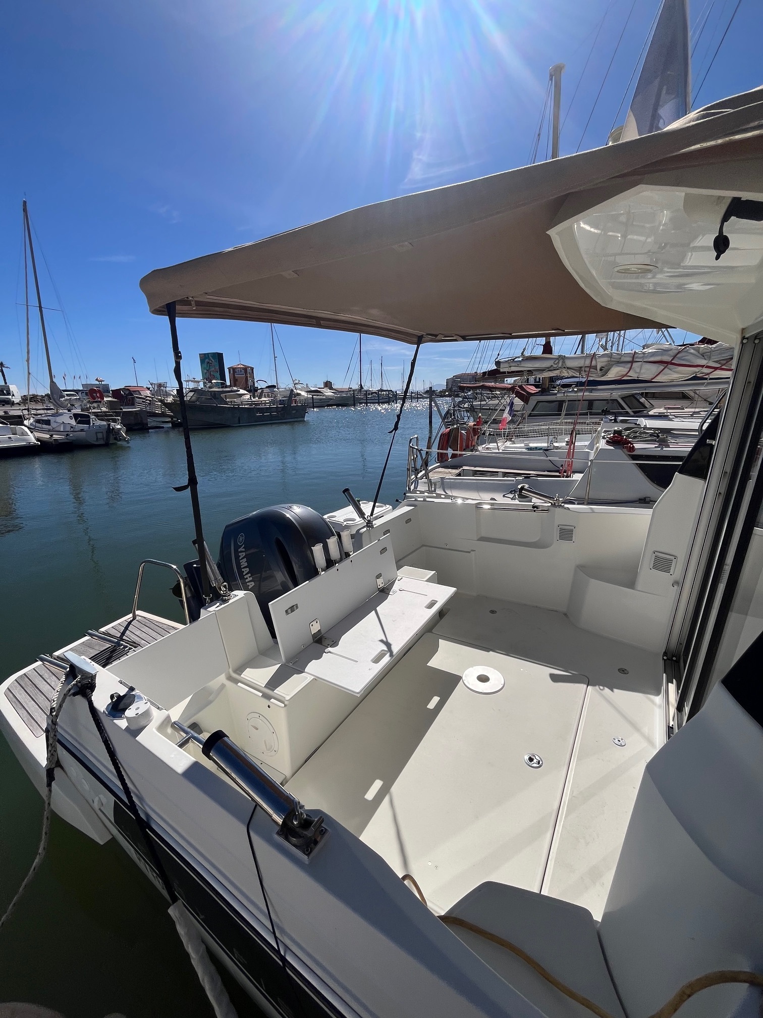 Finition 1ere, guindeau électrique, propulseur d'etrave, table de cockpit, GPS-sondeur LOWRANCE, taud de soleil, plateforme en teck, chargeur de batterie, frigo, cuisine luxe avec gaz, wc marin avec réservoir, pack audio.
